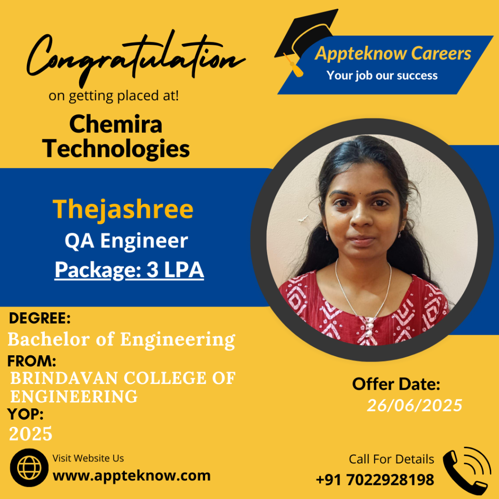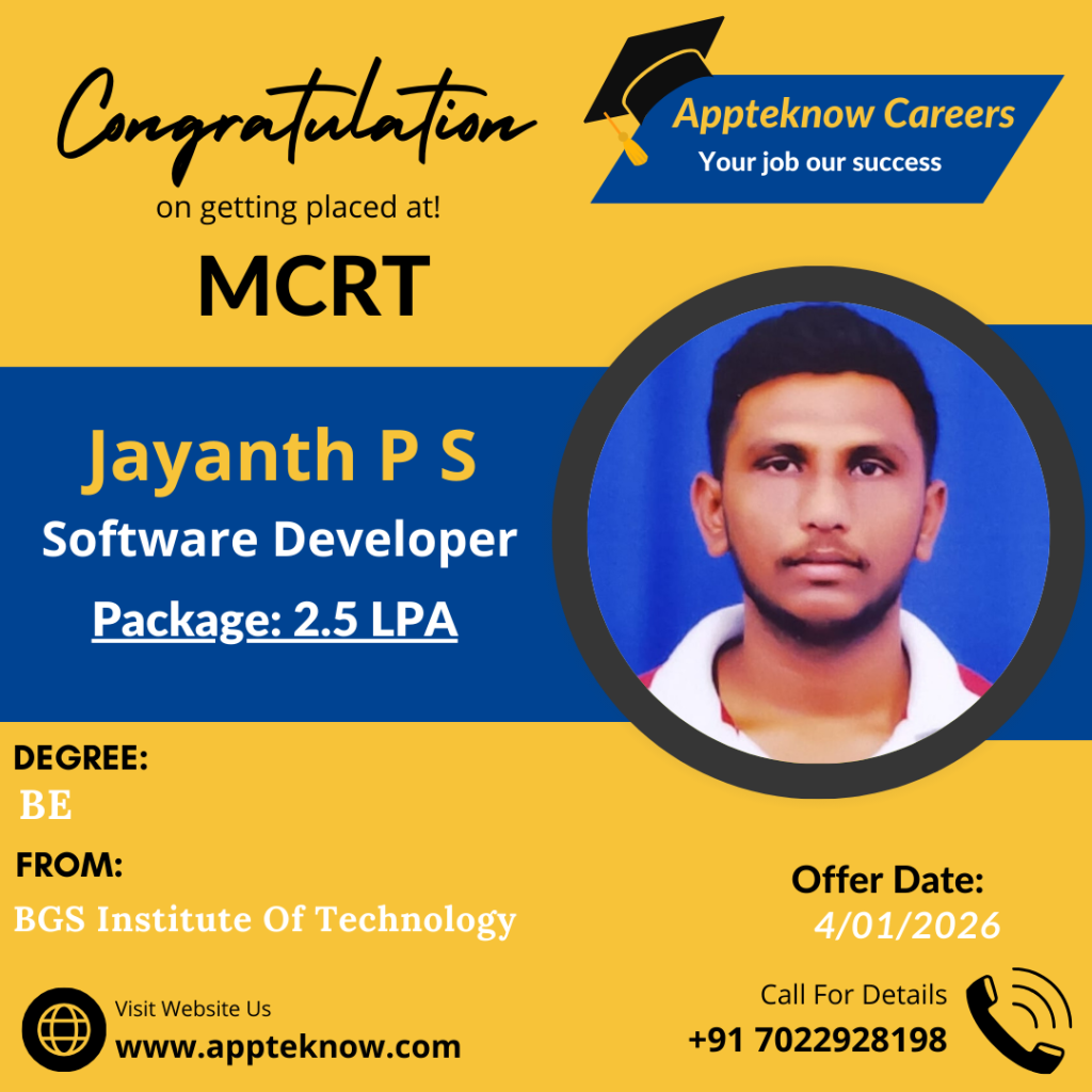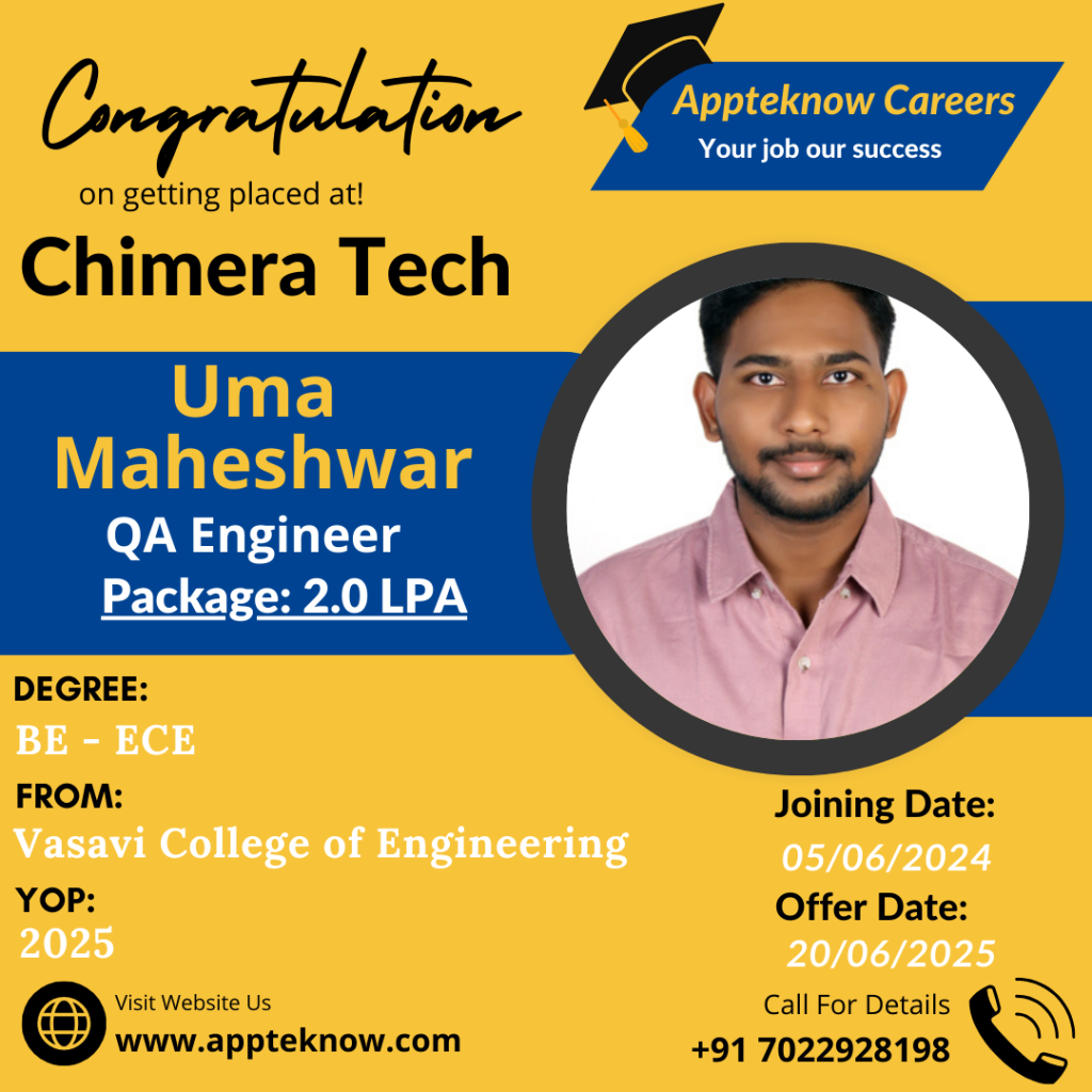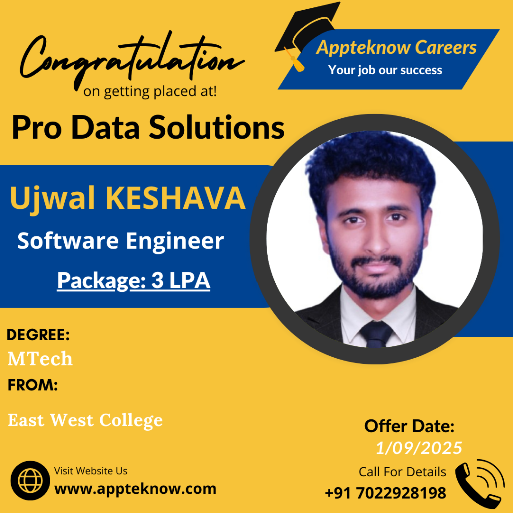 Learn directly from the companies hiring you. Daily Interviews Interviews drives happens daily at our institute & Clients place. Min 40% Success All these years we achieved minimum 40% hiring in all the drives conducted. Interviews till the Job We arrange interviews till you get job after the course. No limitations. Real Testimonial from Real Students VyshnaviStudent Bhupathi RajaStudent PratibhaStudent SabeerStudent UshaStudent ShivamStudent Our Recent & Real Placements This year 23 students got selected out of 49 in Capgemini drive. Last year 29 students got selected out of 83 in Capgemini drive.