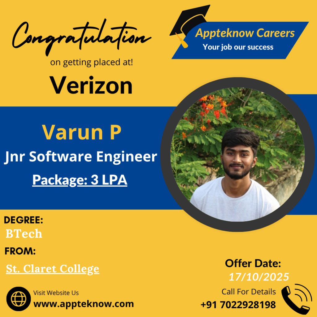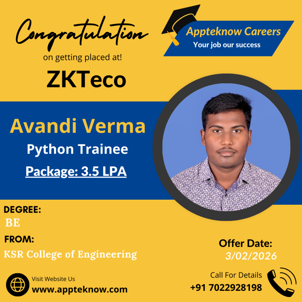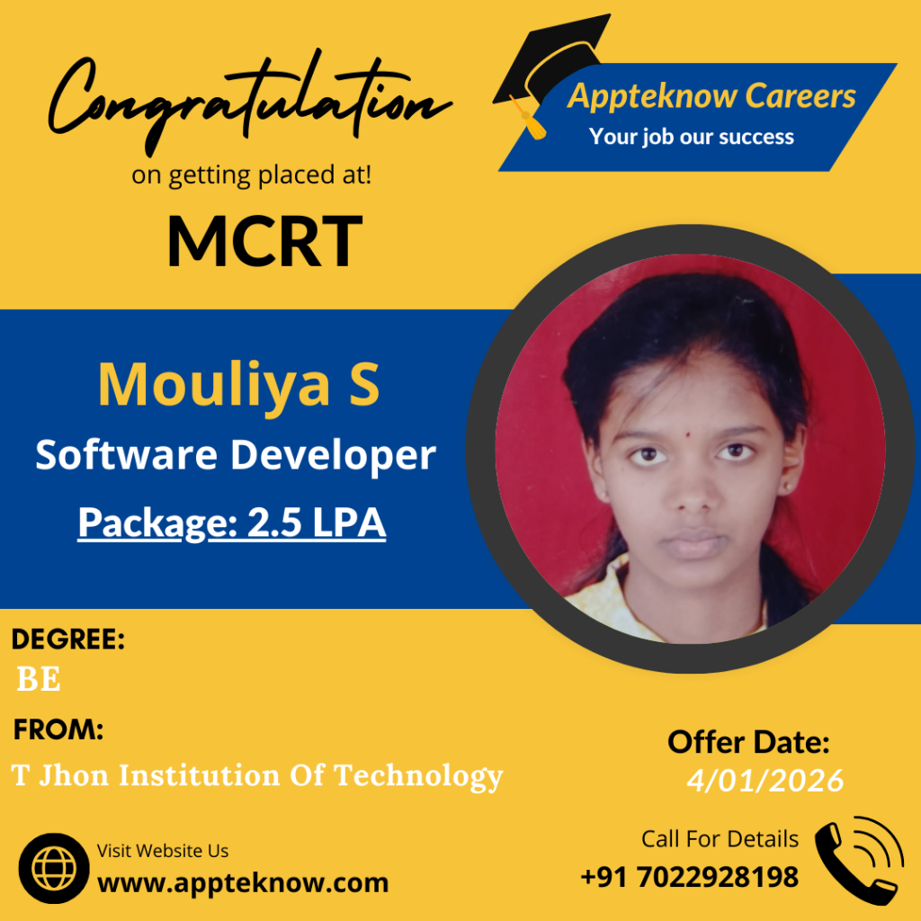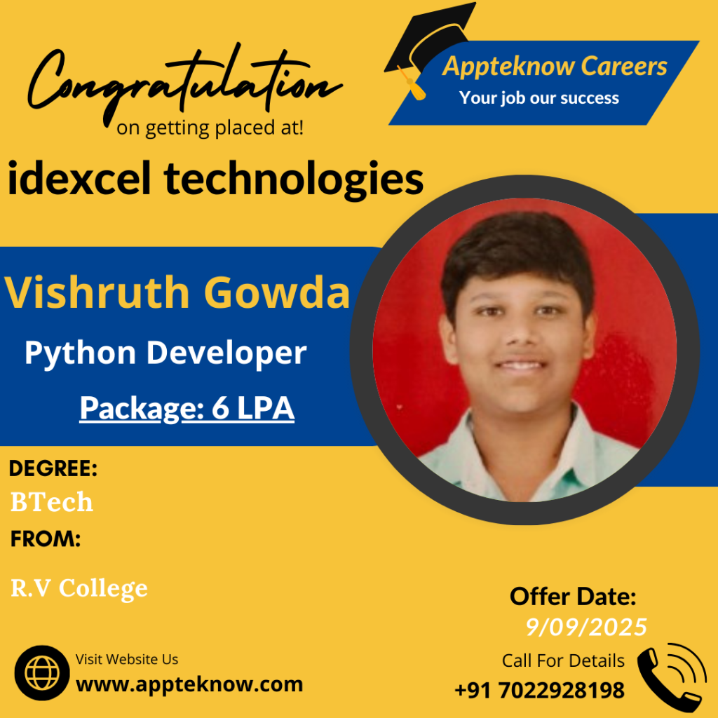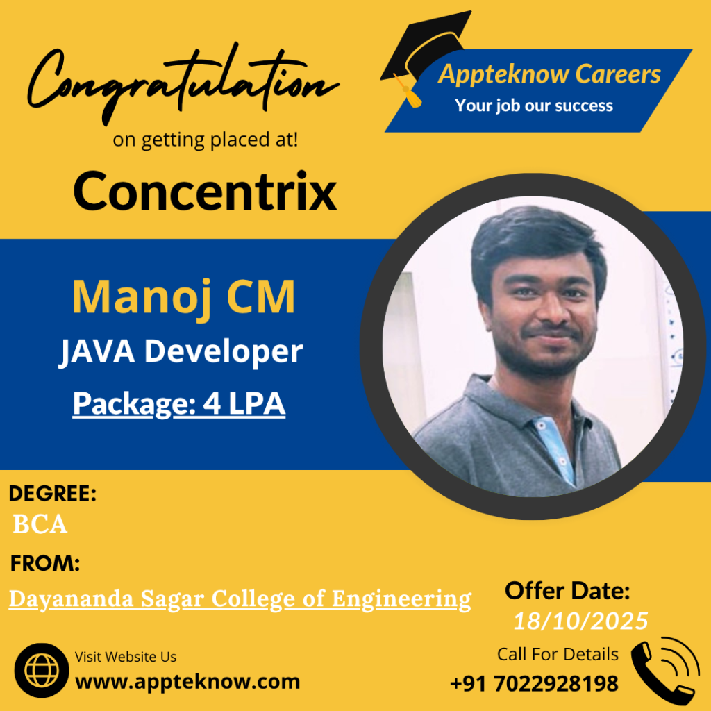 Learn directly from the companies hiring you. Daily Interviews Interviews drives happens daily at our institute & Clients place. Min 40% Success All these years we achieved minimum 40% hiring in all the drives conducted. Interviews till the Job We arrange interviews till you get job after the course. No limitations. Real Testimonial from Real Students VyshnaviStudent Bhupathi RajaStudent PratibhaStudent SabeerStudent UshaStudent ShivamStudent Our Recent & Real Placements This year 23 students got selected out of 49 in Capgemini drive. Last year 29 students got selected out of 83 in Capgemini drive.